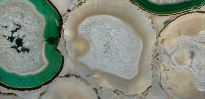 GREEN AGATE. L'Agata è una varieta' di Calcedonio semitrasparente e durissimo; si presenta a bande colorate sfumate dello stesso colore o in colori contrastanti, ondulate o concentriche, che vanno dal bianco al grigio, nero, azzurro, rosso, bruno, verde. Questa pietra dal grande potere curativo, oltre ad infondere senso di forza e coraggio, tonifica e rinforza il corpo mentale e facilita l'abilita' di discernere la verita' e accettare le circostanze. Il suo nome deriva dal greco "Achates", dal fiume della Sicilia presso il quale anticamente la si trovava in abbondanza; i principali giacimenti sono oggi situati nel Sud America. È accertato che già 5.000 anni fa l'agata era impiegata sia per le sue qualità terapeutiche, sia come elemento decorativo e sacro. Citiamo in merito il vasto impiego per la produzione di scarabei e cammei (come quelli di Marco Aurelio e della Sainte-Chapelle, raffigurante Sapore mentre fa prigioniero Valeriano) ed il famosissimo calice di Tolomeo. Nel mondo islamico questa pietra ha un posto di assoluto prestigio, si narra la leggenda che il profeta Maometto portasse sempre un anello d'agata arancio con incisi i versetti della massima devozione ad Allah.