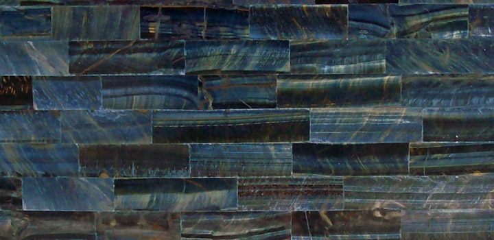 TIGER EYE BLUE. L’Occhio di Tigre è un Quarzo a struttura fibrosa contenente Limonite, un ossido che produce riflessi gialli atti a rendere questo cristallo somigliante agli occhi della tigre: giallo oro con striatura più scura al centro. Le zone di estrazione di questa pietra (capace di donare equilibrio emotivo, accrescendo la fiducia in se stessi e nelle proprie capacità) sono da considerarsi prevalentemente Sud Africa ed India. La leggenda narra che proprio in quest'ultima terra, le madri avessero usanza di porre questo Quarzo nelle tasche dei propri figli per proteggerli da ogni pericolo. È inoltre antica credenza che l'Occhio di Tigre (amuleto della tranquillità) abbia un effetto protettivo sugli occhi e contro ogni tipo di sortilegio. È la pietra per eccellenza da indossare nei momenti di difficoltà, poiché sostiene, dona fiducia, e aiuta a difenderci dalle influenze esterne (situazioni e persone opprimenti). L'Occhio di Tigre viene adottato anche per ottenere la forza di volontà necessaria a portare a termine un progetto. Oggi, oltre che in progetti lussuosi, L'Occhio di Tigre è largamente impiegato per la produzione di ciondoli, collane o bracciali.